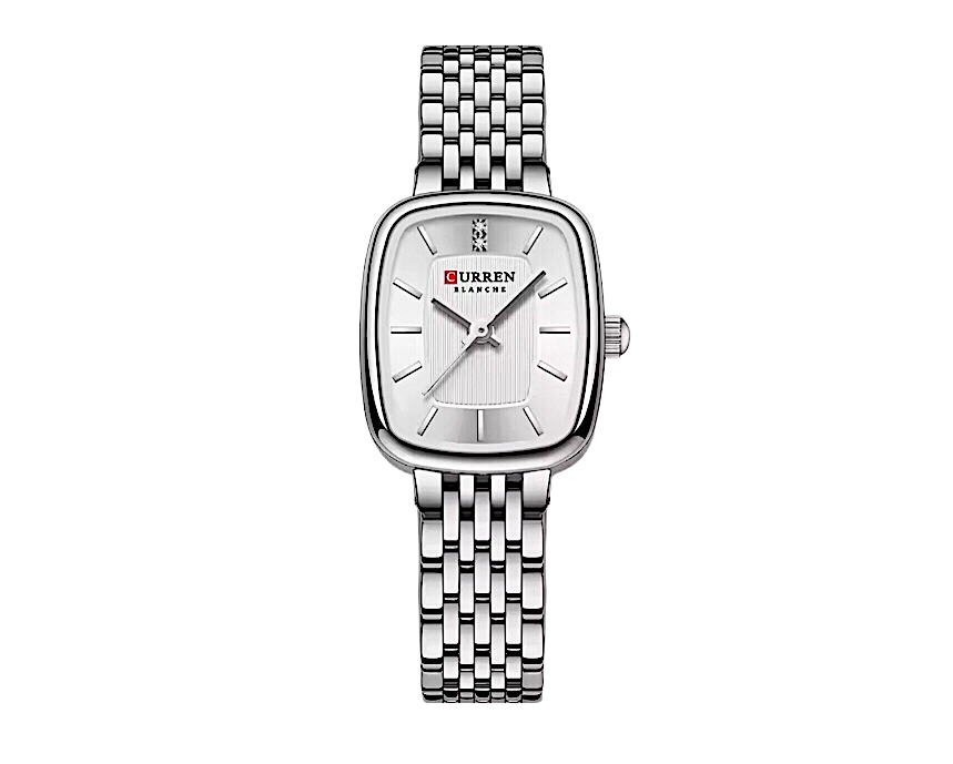 Ασημί λουρί από ανοξείδωτο ατσάλι: Είναι άνετο και ασφαλές στη χρήση, συμπληρώνοντας την εξαιρετική ομορφιά του ρολογιού.