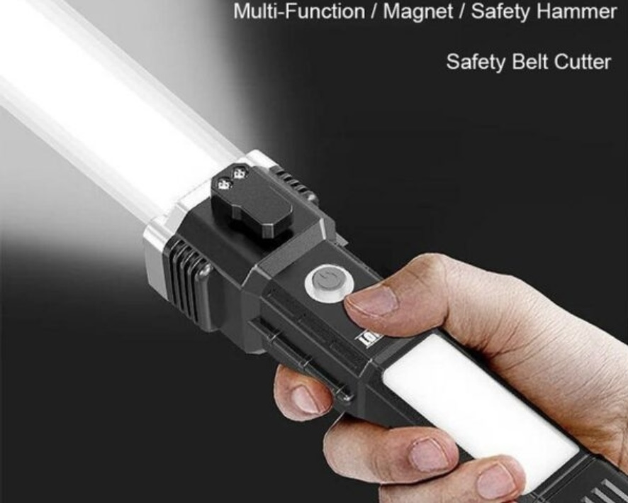 Η αριστερή πλευρά του φακού είναι εξοπλισμένη με ένα σφυρί ασφαλείας από κράμα υψηλής σκληρότητας και η δεξιά πλευρά της κεφαλής είναι εξοπλισμένη με λαβή μαχαιριού, η οποία μπορεί να χρησιμοποιηθεί για διαφυγή σε περίπτωση έκτακτης ανάγκης.