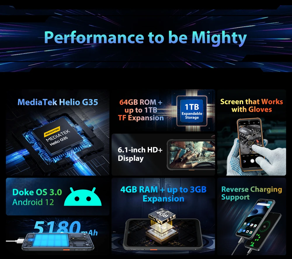 Το BLACKVIEW BV5200 Pro διαθέτει MediaTek Helio G35 , ένα chipset οκτώ πυρήνων(4x 2.3 GHz Cortex-A53, 4x 1.8 GHz Cortex-A53) που του δίνει καλή ισχύ για να μπορεί να το χρησιμοποιεί με πολλαπλές εργασίες. μνήμες, έχει 4 GB RAM και έχει χωρητικότητα αποθήκευσης 64 GB . Αυτό είναι επεκτάσιμο μέσω κάρτας SD έως 1TB(512GB+512GB).