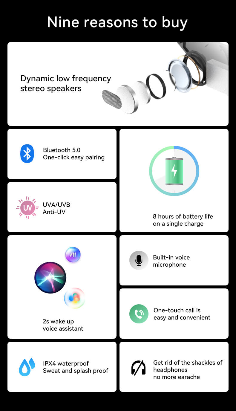 Το Doogee AJ01 προσφέρει σχεδόν ακριβώς τα ίδια χαρακτηριστικά που θα περιμένατε από ένα κλασικό TWS. Τα γυαλιά μπορούν να συνδεθούν στο τηλέφωνό σας μέσω Bluetooth 5.0 και στη συνέχεια να παίξουν μουσική μέσω των δύο ηχείων. Το μηχάνημα διαθέτει επίσης μικρόφωνο, ώστε να μπορείτε επίσης να χρησιμοποιείτε το Doogee AJ01 για να πραγματοποιείτε κλήσεις. Ταυτόχρονα, το μικρόφωνο υποστηρίζει και τη χρήση φωνητικών βοηθών. Ωστόσο, περιλαμβάνονται μόνο οι υπηρεσίες βοήθειας της Xiaomi και το Siri.