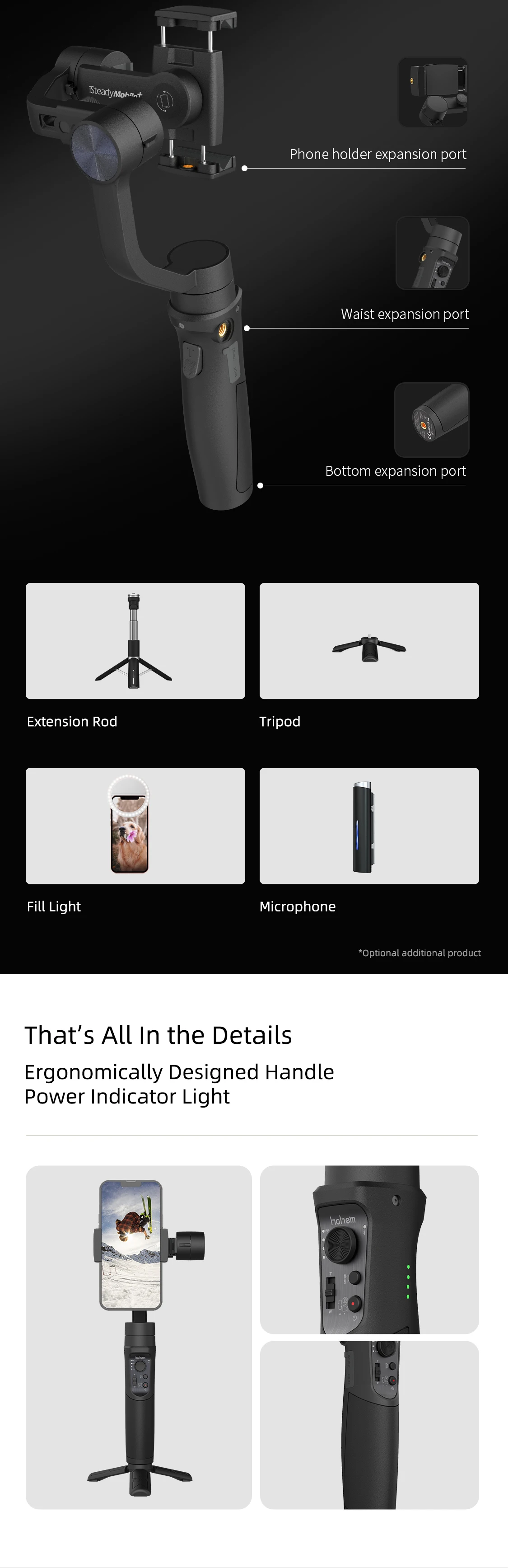 Το iSteady Mobile2 μπορεί να εισέλθει στη λειτουργία PhoneGo πατώντας παρατεταμένα το κουμπί της σκανδάλης, να απελευθερώσει τις δυνατότητες των κινητήρων αστραπιαία και να ανταποκριθεί σε κάθε λεπτή κίνηση χωρίς καθυστέρηση.